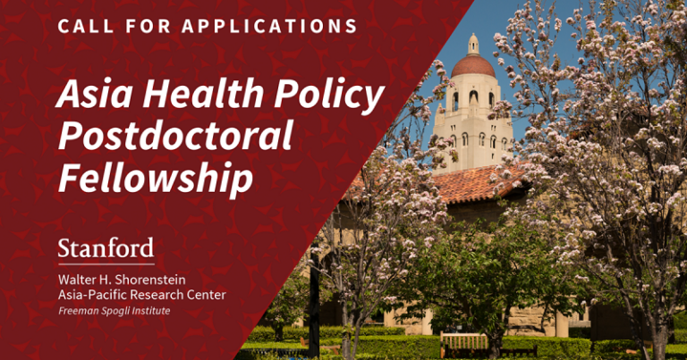 Applications are open for the Asia Health Policy Program Postdoctoral Fellowship 2026-2027. The Asia Health Policy Program at the Shorenstein Asia-Pacific Research Center (Shorenstein APARC) promotes a comparative understanding of health and health policy in the Asia-Pacific region. From its inception, the program has been committed to fostering the next generation of Asia health policy researchers. Each year the program offers a postdoctoral fellowship position to a recent doctoral graduate.