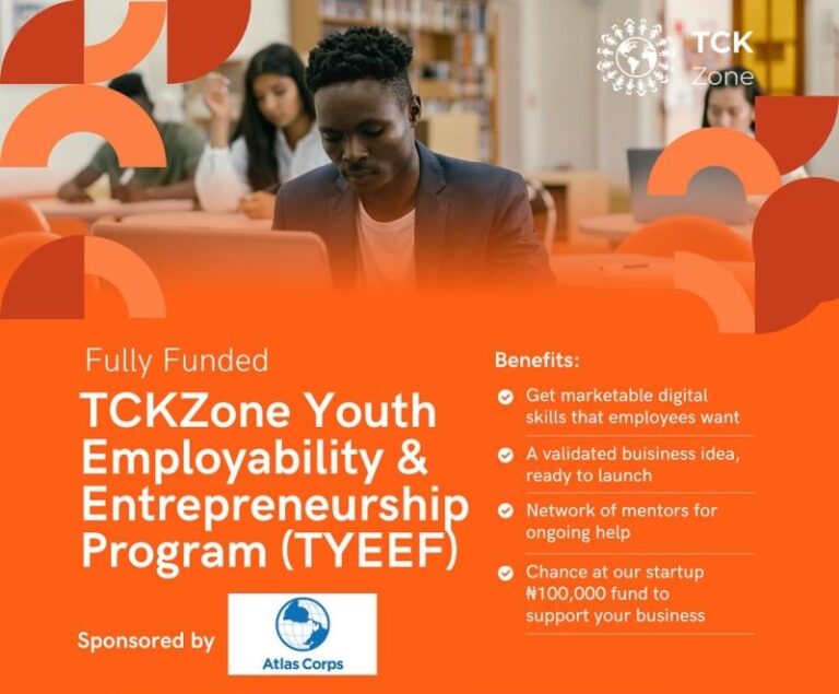 Applications are open for the TCKZone Youth Employability & Empowerment Fellowship (TYEEF) 2025. The TCKZone Youth Employability and Entrepreneurship Fellowship (TYEEF) is a 4-week intensive digital and entrepreneurship skills training program designed to equip underserved youth in Nigeria with the competencies needed to thrive in the digital economy. Targeting youth aged 18–30, the program addresses the pressing issues of youth unemployment and lack of access to practical, market-relevant skills.
